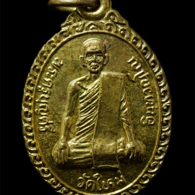 เหรียญหลวงปู่บุญศรี วัดใหม่ศรีสุทธาวาส (วัดใหม่) จ.นครสวรรค์ รุ่นพัดยศ ปี2537 เหรียญเนื้อกะไหล่ทอง พระก่าสวยมวลสารดี น่าเก็บสะสมบูชา