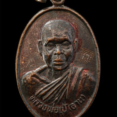 เหรียญนั่งพาน พระอาจารย์ผัน ธมมปาโล (หลวงปู่ผัน) วัดชัยมงคล อ.กมลาไสย จ.กาฬสินธุ์ รุ่น 2 เนื้อทองแดงรมดำ พระเก่าสวย น่าเก็บสะสมบูชา