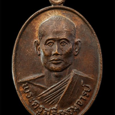 เหรียญพระอุบาลีคุณูปมาจารย์ (สิริจนฺโท) วัดพระบาทมิ่งเมืองวรวิหาร จ.แพร่ รุ่นอนุสรณ์หล่อรูปเหมือน ปี2520 เหรียญเนื้อทองแดงรมดำ