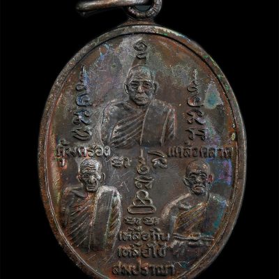 เหรียญ หลวงพ่อทัต ภูริทัตโต วัดสฎางค์ อ.ท่าเรือ จ.อยุธยา ด้านหลัง หลวงปู่คำ หลวงปู่แก้ว หลวงปู่นาก รุ่นสร้างศาลาการเปรียญ ปี2516 เนื้อทองแดง