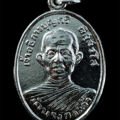 เหรียญเจ้าอธิการบุญกรี ติสฺสวํโส วัดบางกระเจ้า จ.สมุทรสาคร ปี2520 เหรียญเนื้อกะไหล่เงิน พระเก่าสวย มวลสารดี น่าเก็บสะสมบูชา