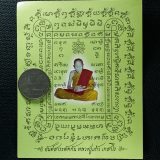 กระดาษยันต์สารพัดกัน หลวงปู่แก้ว เกสาโร พิมพ์ 2 หน้า ปี2556 พิธีปลุกเกสรุ่นเก้าแก้วจินดามณี พระเกจิหลาวยท่านรวมปลุกเสก อาทิเช่น หลวงพ่อสิน ภทฺทาจาโร(พระครูสุภัททาจารคุณ) เจ้าอาวาสวัดละหารใหญ่, หลวงพ่ออาด วัดตะพุนทอง เพื่อร่วมทำบุญสร้างรูปเหมือนหลวงปู่ทิม อิสริโก ขนาดหน้าตัก32นิ้ว ถวาย วัดหนองพะวา อ.บ้านค่าย จ.ระยอง ณ วิหาร3 หลวงปู่ (หลวงปู่ทิม, หลวงปู่แก้ว, หลวงปู่นาค)