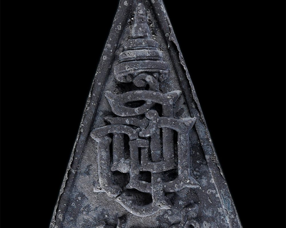 พระไพรีพินาศพิมพ์สามเหลี่ยม เนื้อผงพุทธคุณ ผสมว่านสีน้ำตาล วัดบวรนิเวศวิหาร กรุงเทพฯ ที่ระลึกฉลองครบ 7 รอบ 84 พรรษา สมเด็จพระญาณสังวร สมเด็จพระสังฆราช สร้างปี 2540 พระเก่าสวย พร้อมกล่องเดิมๆ น่าเก็บสะสมบูชา