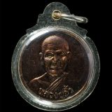 เหรียญหลวงพ่ออิ้ว วัดโบสถ์พลอยแหวน ต.บางกะจะ อ.เมือง จ.จันทรบุรี เหรียญเนื้อทองแดง เลี้ยมพลาสติกเก่า