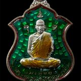 เหรียญเลื่อนสมณศักดิ์ หลวงพ่อลุน(สมเด็จลุน) วัดบ้านแก้ง ต.แก้ง อ.เดชอุดม จ.อุบลราชธานี ปี2560 เหรียญเนื้อชนวมมวลสาร หน้ากากเงินลงยาสีเขียว ตอกโค๊ต ล หมายเลข ๔๖ พระสวย มวลสารดี วาระมงคล น่าเก็บสะสมบูชา พร้อมกล่องเดิมๆ