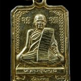 เหรียญแสตมป์ หลวงปู่บุญมี ฐิตาจาโร วัดเกาะ ต.วังลึก อ.ศรีสำโรง จ.สุโขทัย พิมพ์หลังยันต์ บล็อกแคก เหรียญเนื้อกะไหล่ทอง พระเก่าสวย มวลสารดี น่าเก็บสะสมบูชา
