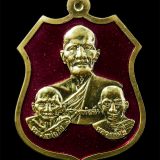 เหรียญ 3 เจ้าอาวาสวัดบางพระ จ.ชลบุรี หลวงปู่ฉิ่ง, หลวงปู่กัง, และหลวงปู่บู๊ หลังหลวงพ่อปากแดง ที่ระลึกโรงเรียนอรุณชัยการช่าง เหรียญเนื้อกะไหล่ทองลงยาสีแดง พระเก่าสวย น่าเก็บสะสมบูชา